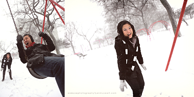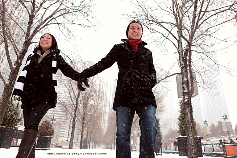 We thought it’d be a rare opportunity for a photo shoot with the city AND the snow as backdrops. Even though it was freezing cold and windy at the same time, we must say that we were graced with a highly rewarding and “enmusing” experience from this winter wonder-, I mean, windyland session.