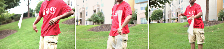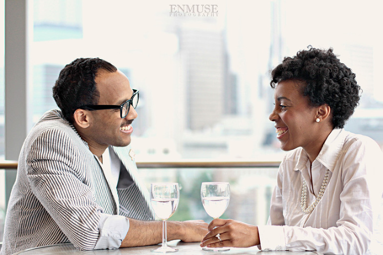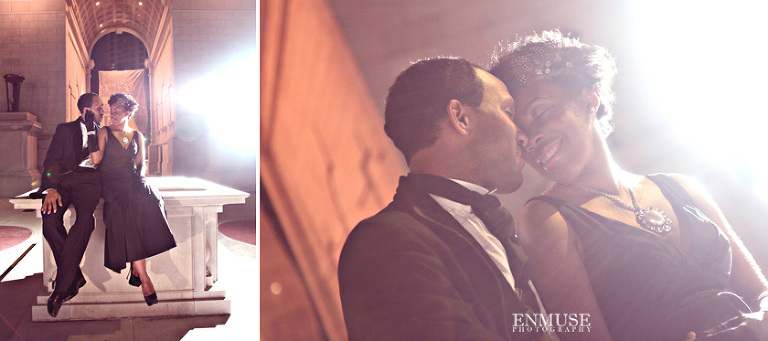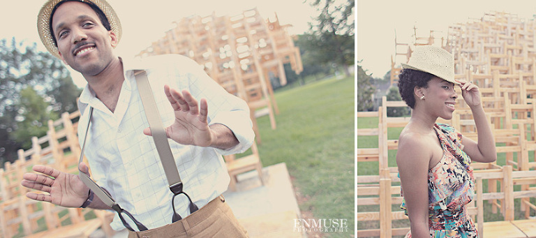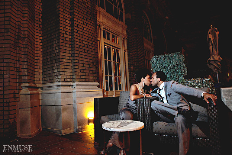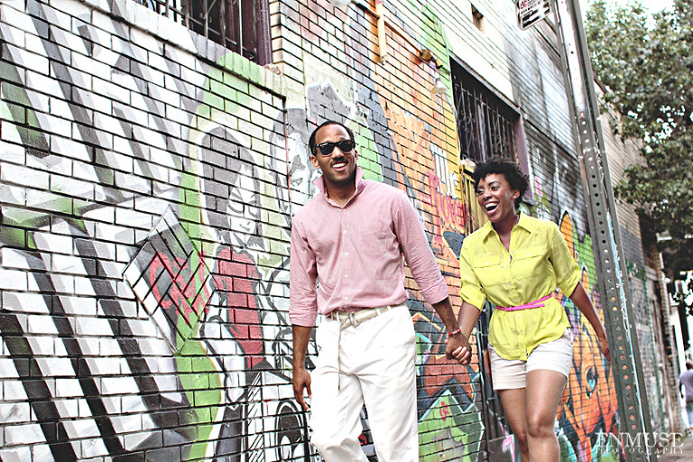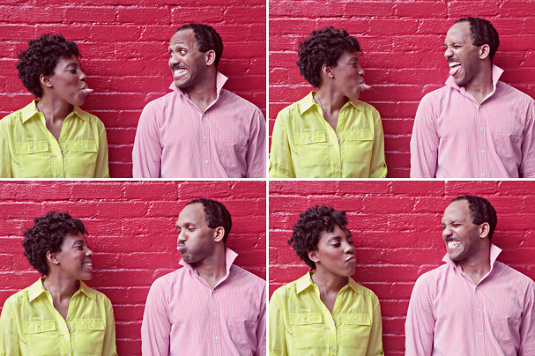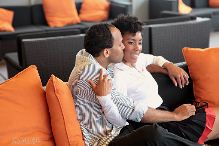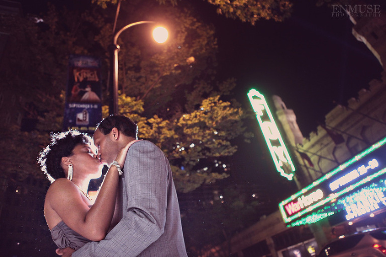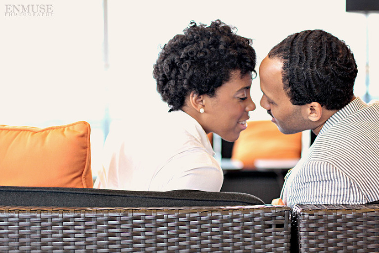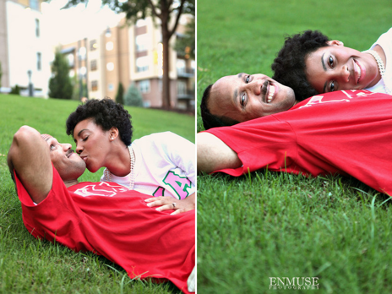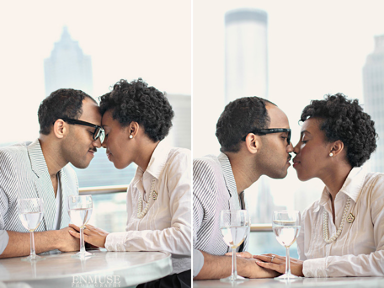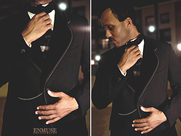 We then hopped over to the Little Five Points area where it is known for multitudes of graffiti and colored walls. Apparently the colors brought the “colorful” character of Tiffany and Michael as they did tons of fun and wacky expressions. Our next stop was the Glenn Hotel where we wanted to incorporate an editorial look of the lovebirds with the Atlanta skyline. Oh, and not to forget, their collegiate “capes” and fraternity/sorority icons: a pink mirror and a white cane.