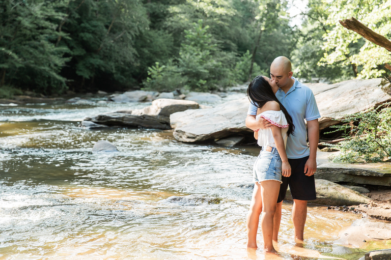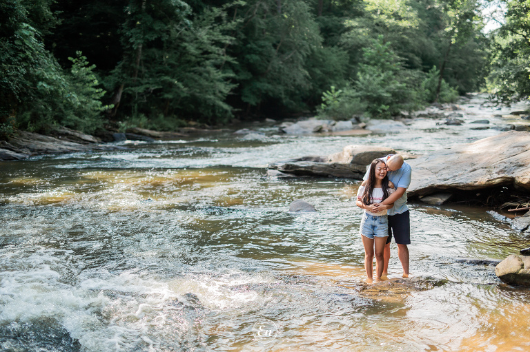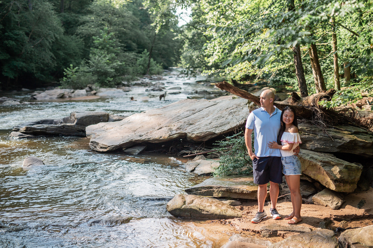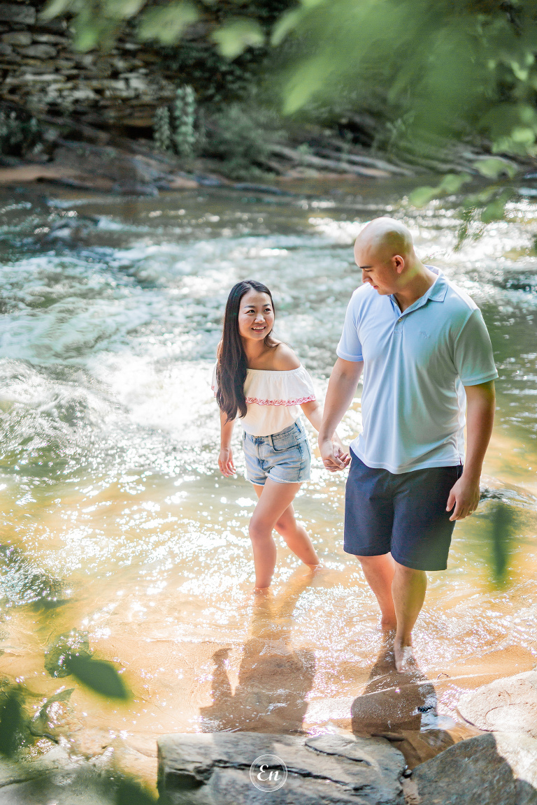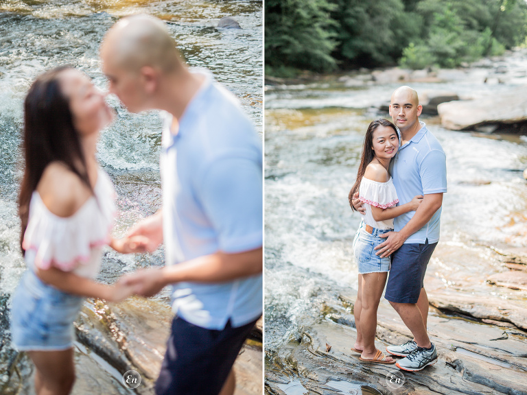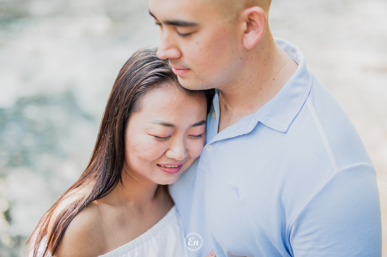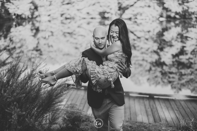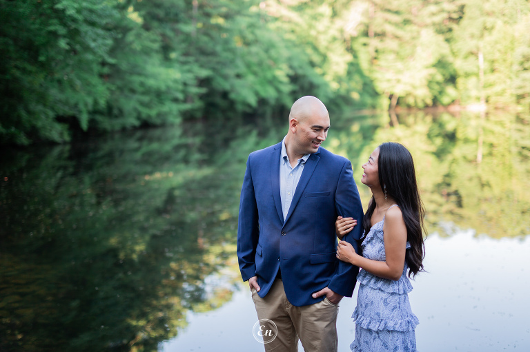 Always a treat to photograph our couples near a body of water (or, even better, in it). Whether it is the calming quality of still waters or the dramatic effect of rough waters or anything in between. It doesn’t matter if it is the wide ocean or flowing river or quiet lake or a simple pond. Water often makes a good supporting actress in a photograph.