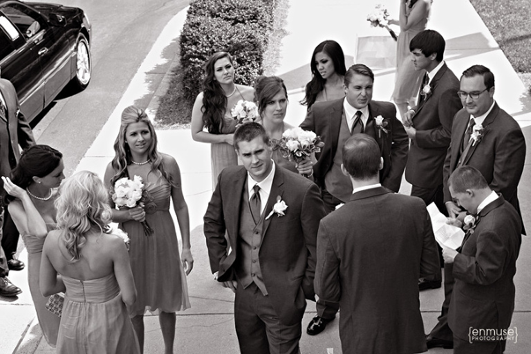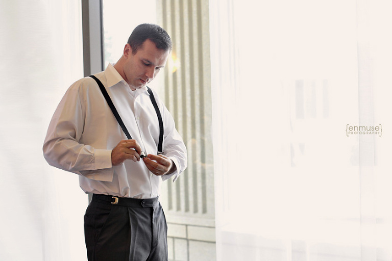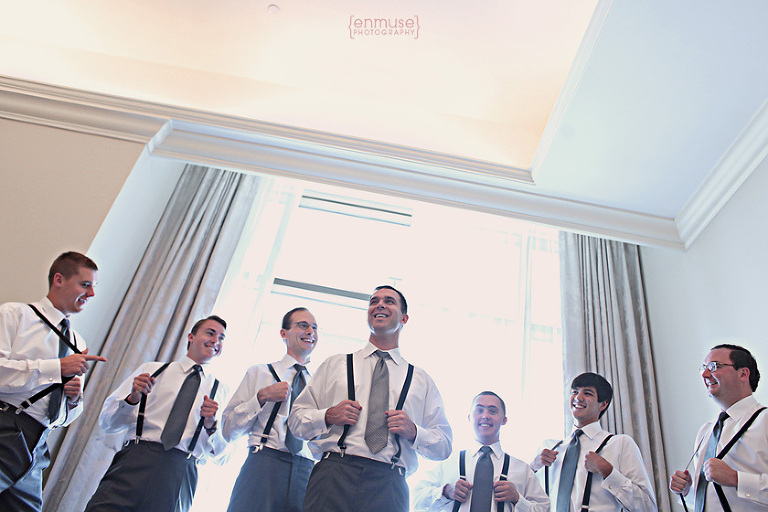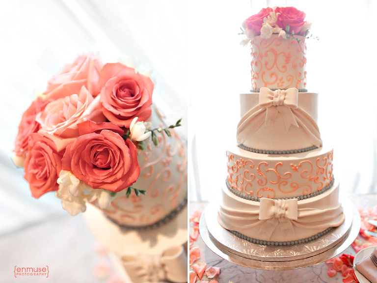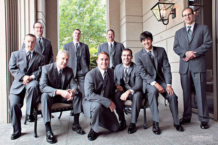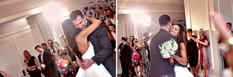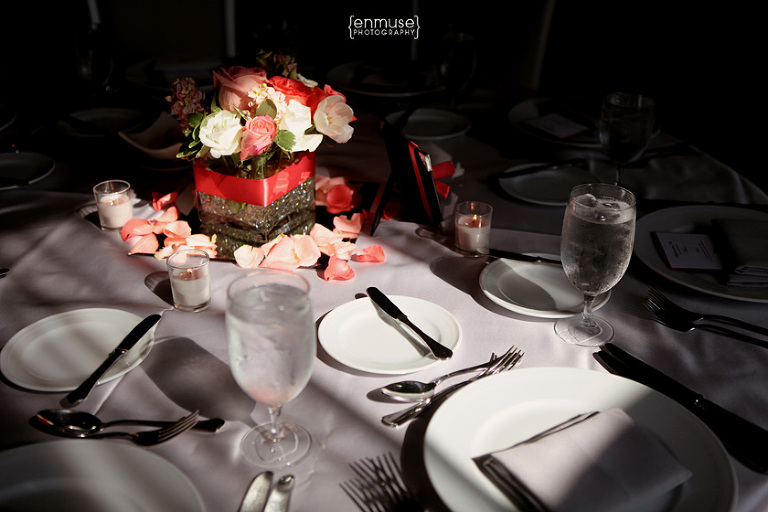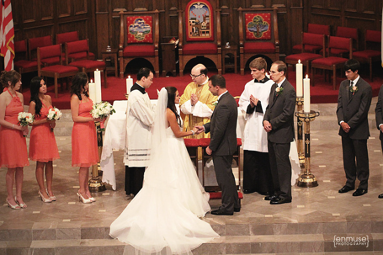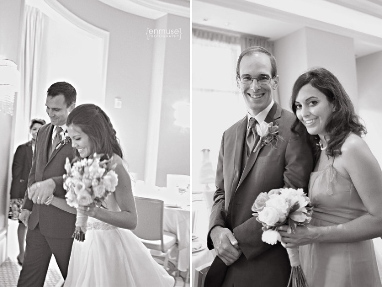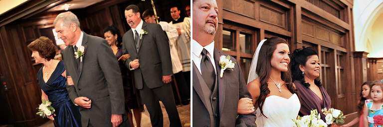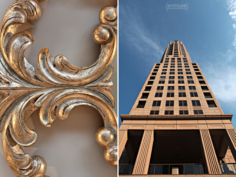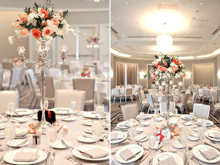 There is no better place to start and end Stephanie and Jim’s special day than the fittingly elegant Mandarin Oriental Atlanta Hotel in Buckhead (formerly The Mansion on Peachtree). Their modern airy interior combined with charming vintage details certainly make for a picturesque backdrop. So imagine our glee when Steph and Jim’s wedding planner extraordinaire, Donna from Confetti, let us worked in enough time for picture-taking within the schedule. Couple pics in the English garden? Check. Experimenting with The Dress and the girls’ Amsale coral dresses on the spiral stairwell? Check. We even had time to let the two enjoy a private slow dance next to the hotel’s piano man while we were clicking away from the top of the stairwell. It was PERFECT.