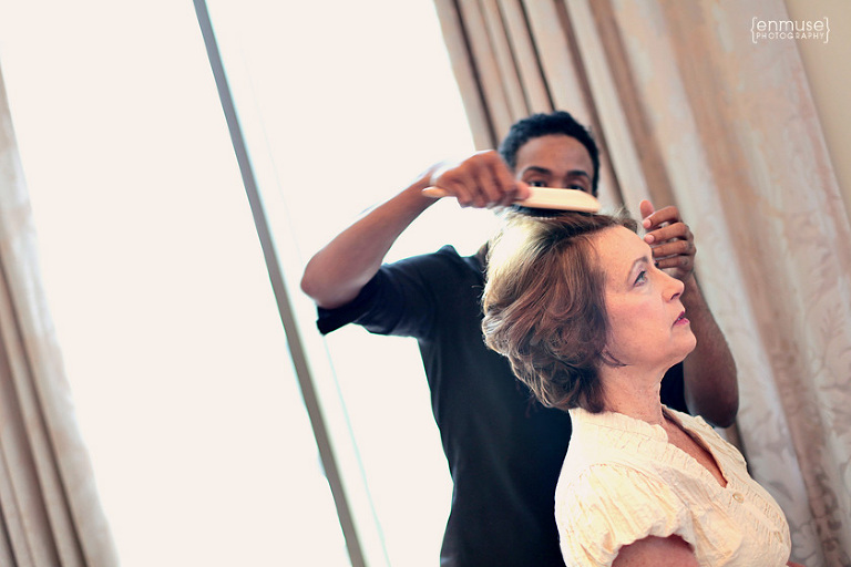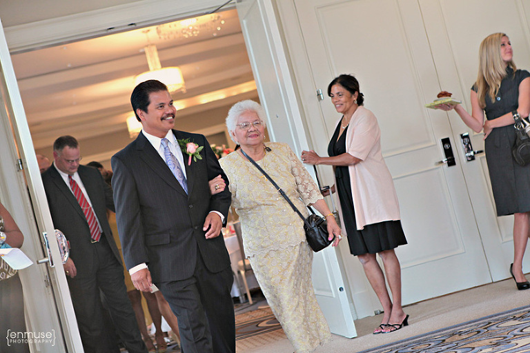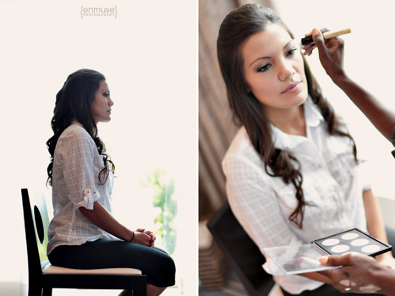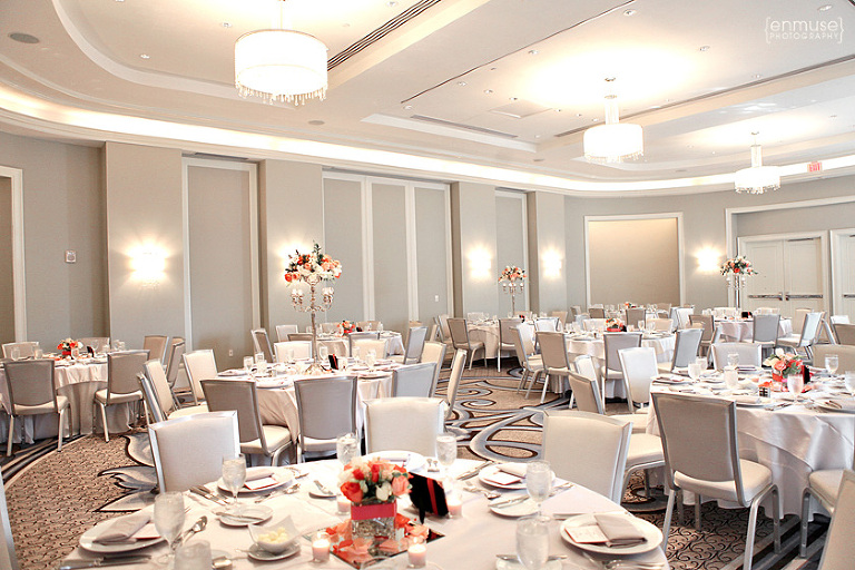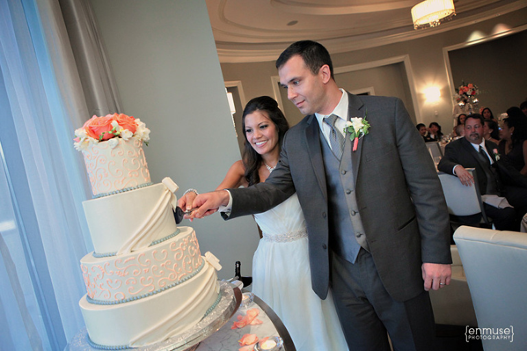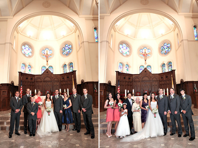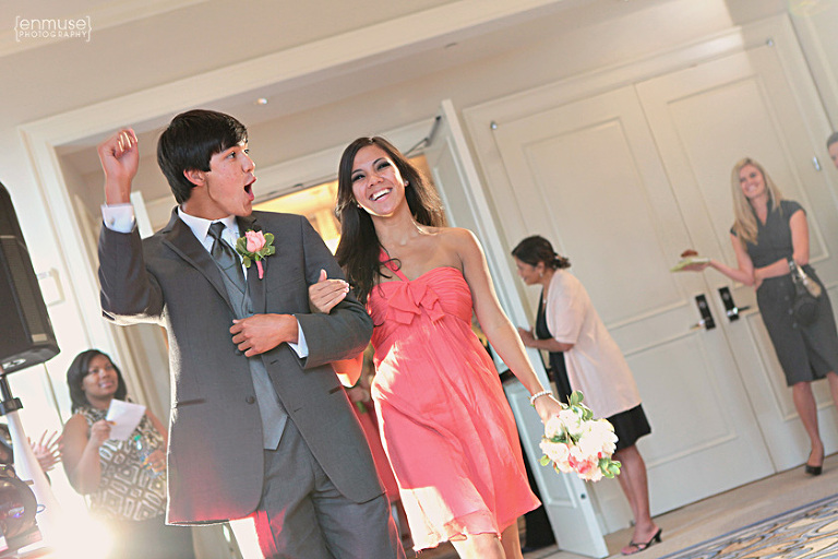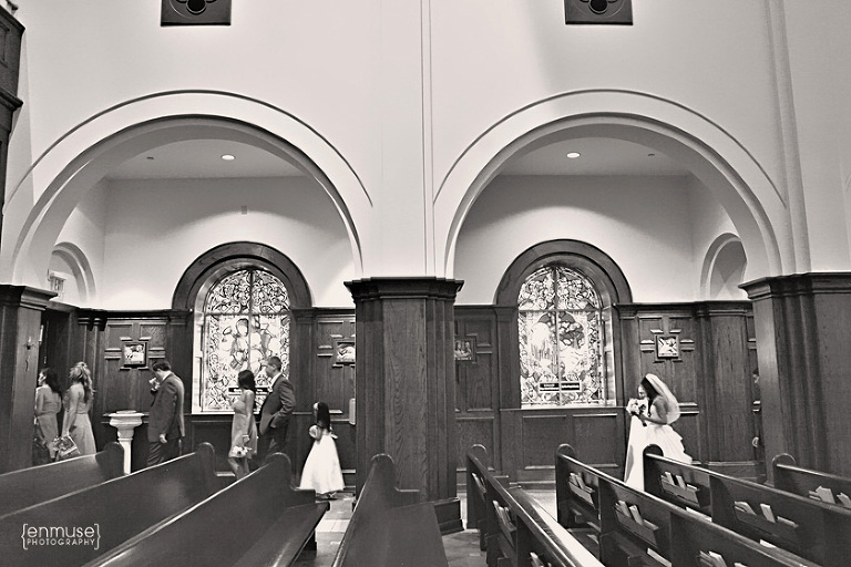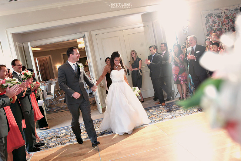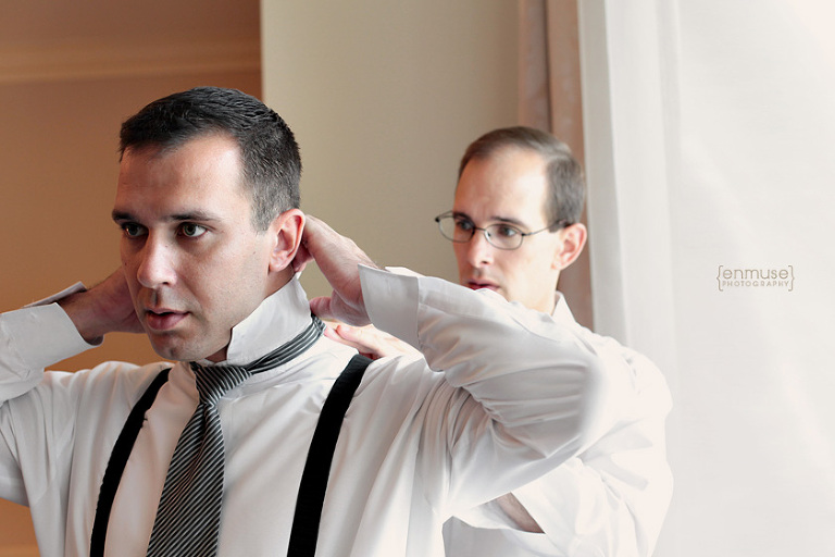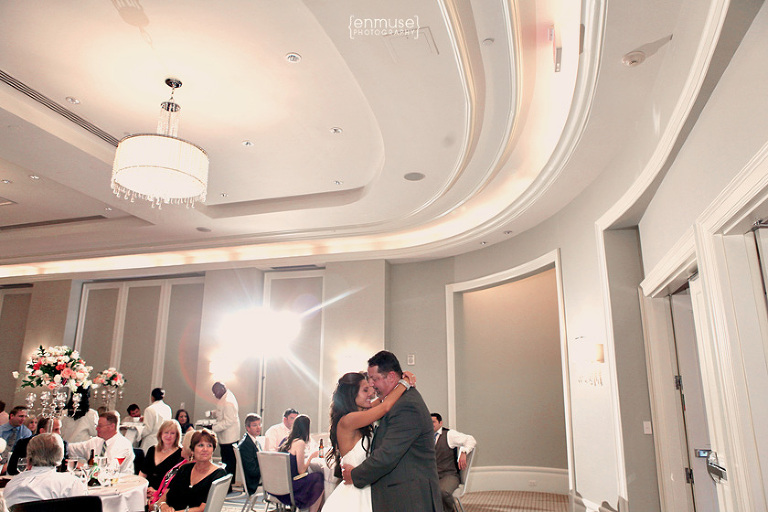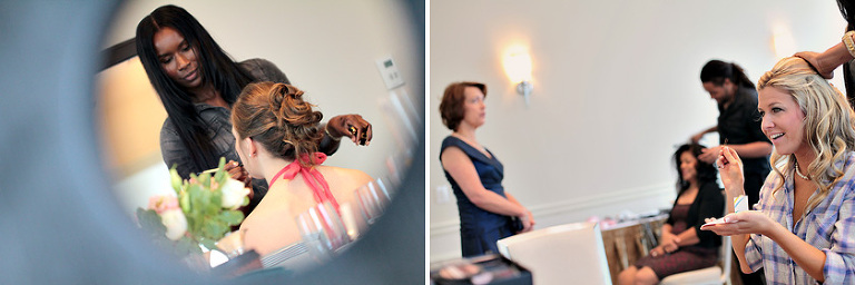 There is no better place to start and end Stephanie and Jim’s special day than the fittingly elegant Mandarin Oriental Atlanta Hotel in Buckhead (formerly The Mansion on Peachtree). Their modern airy interior combined with charming vintage details certainly make for a picturesque backdrop. So imagine our glee when Steph and Jim’s wedding planner extraordinaire, Donna from Confetti, let us worked in enough time for picture-taking within the schedule. Couple pics in the English garden? Check. Experimenting with The Dress and the girls’ Amsale coral dresses on the spiral stairwell? Check. We even had time to let the two enjoy a private slow dance next to the hotel’s piano man while we were clicking away from the top of the stairwell. It was PERFECT.