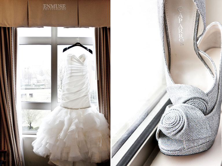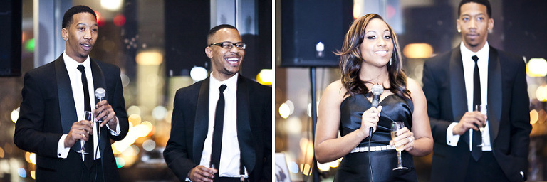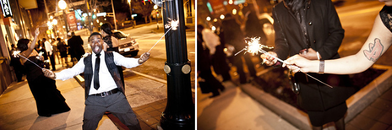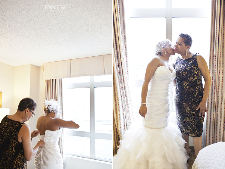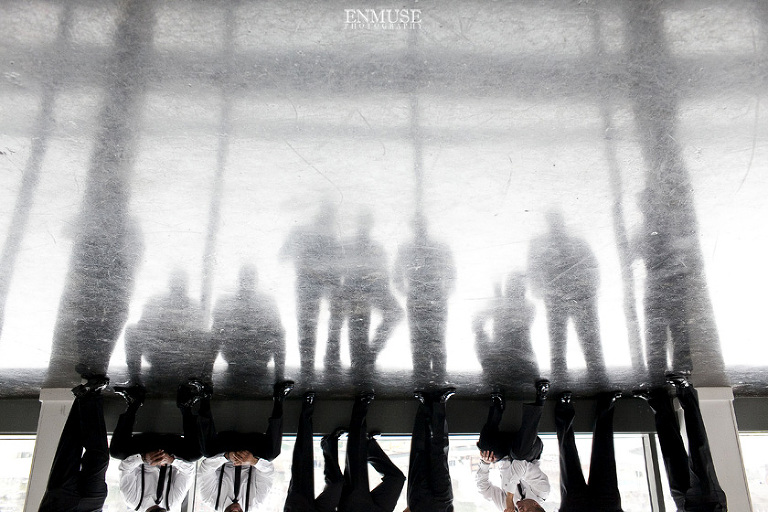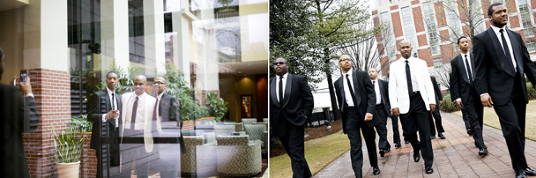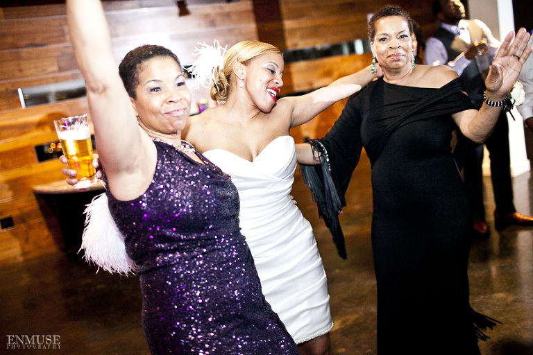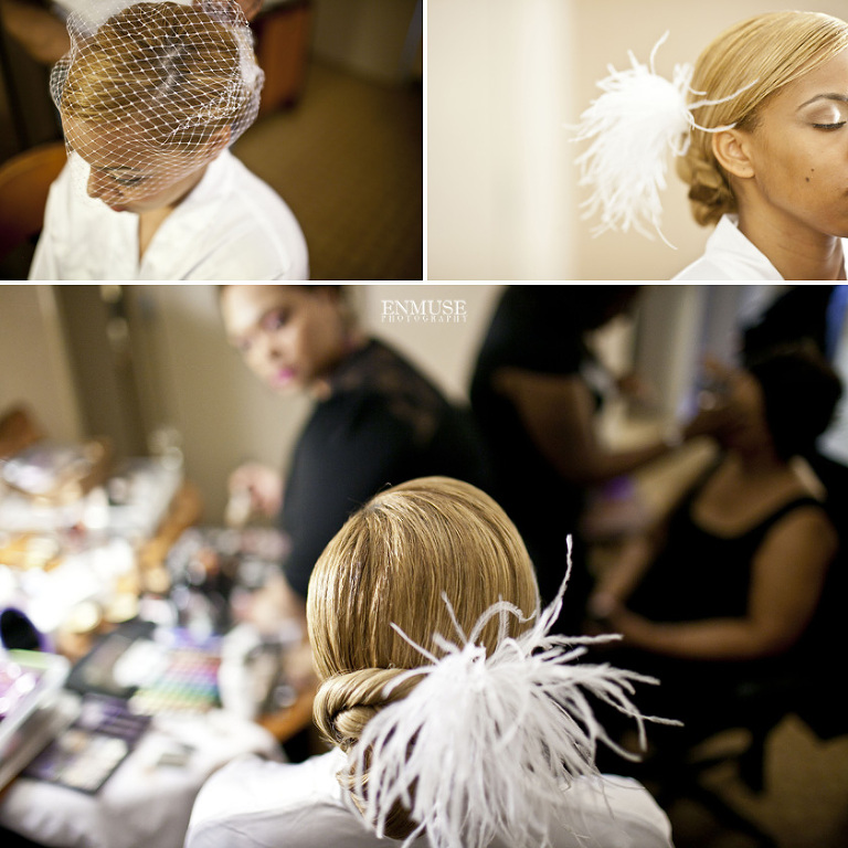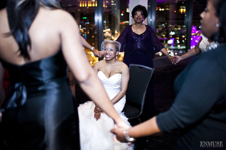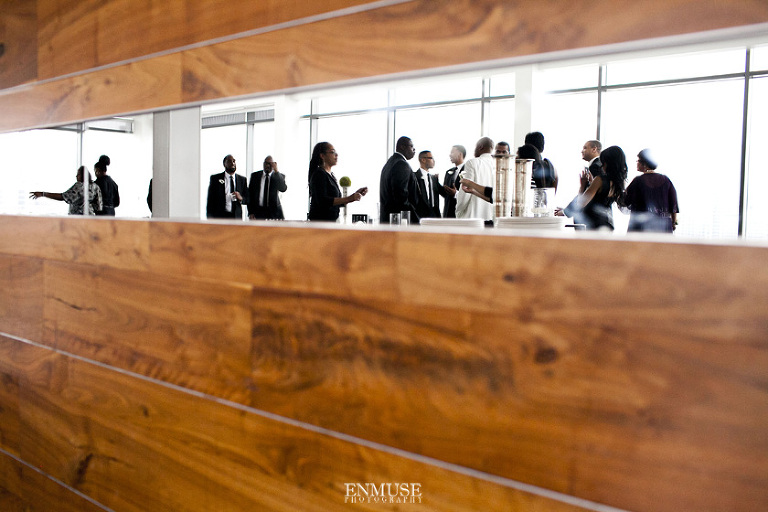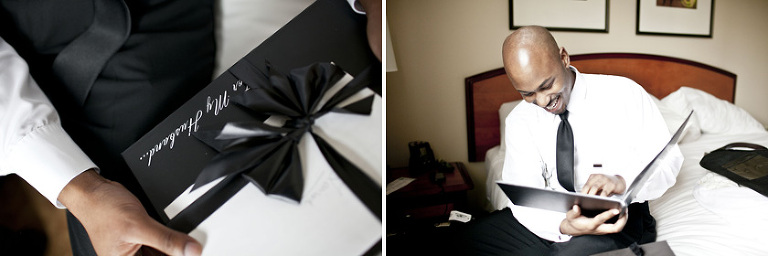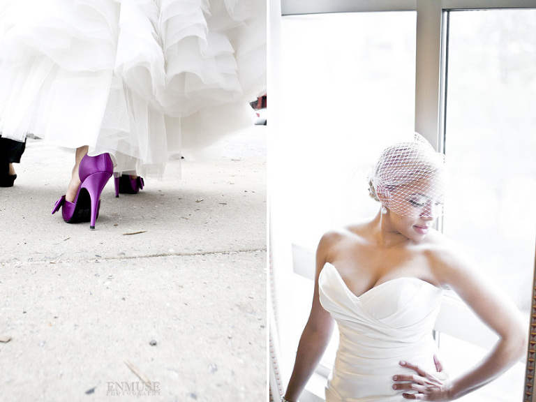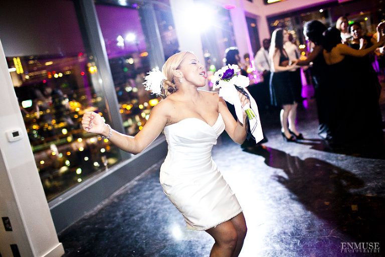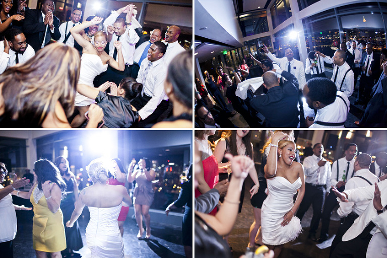 Remy and Lamont’s engagement session was the embodiment of high fashion, style and urban feel. So when it comes to planning their wedding, the couple stayed true to their vision and this “suit & tie”-esque wedding was born. The groom suited up in a classic white tux and black pants (think Jay-Z) while the groomsmen were wrapped in slick black tuxes. The bride looked angelic in her white dress and old Hollywood style veil while the bridesmaids were astonishing in various black dresses with elegant white hydrangea bouquets.