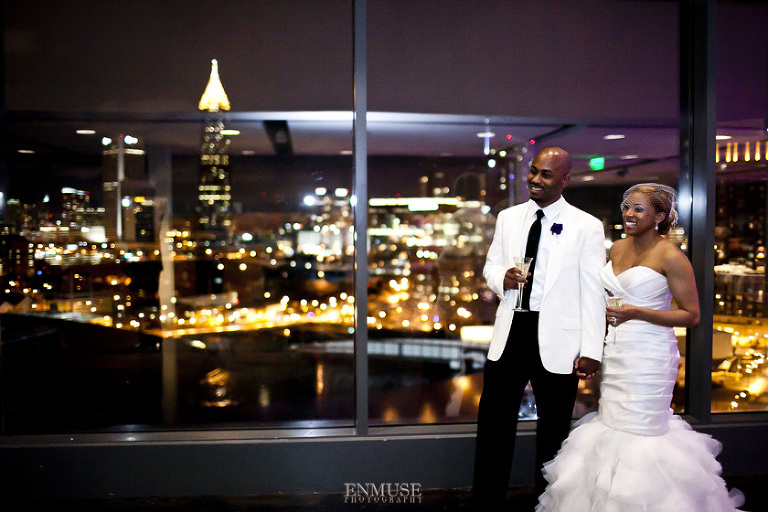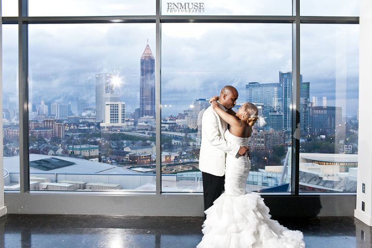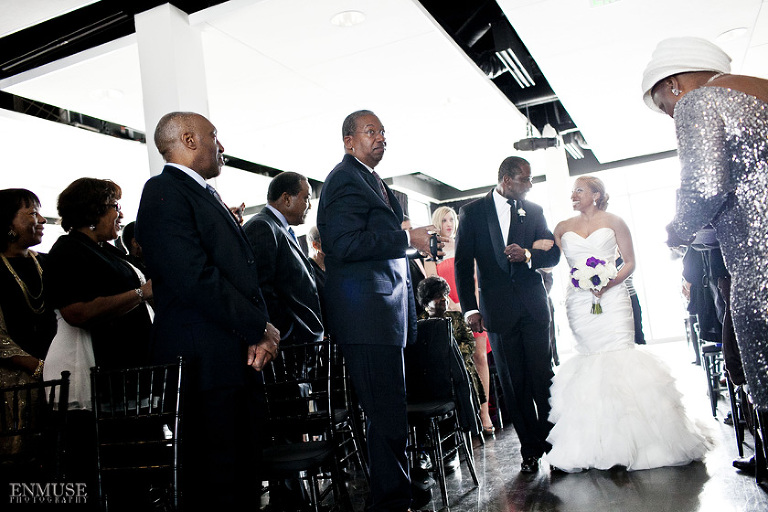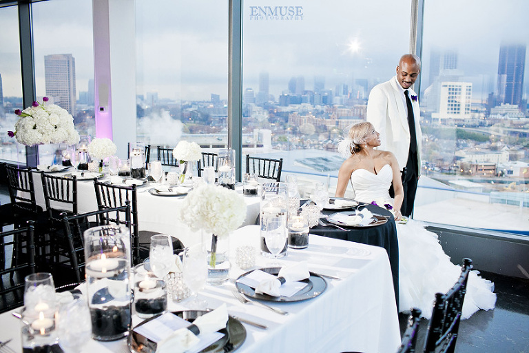 To amplify their vision, Remy and Lamont picked the perfect spot tucked in the middle of downtown Atlanta, The Ventanas. With high ceiling windows, we were completely surrounded by architectural structures and city lights as dusk fell to night. Last but not least, the happy couple was chauffeured in a vintage white Bentley as they make their way towards their honeymoon in St. Lucia.